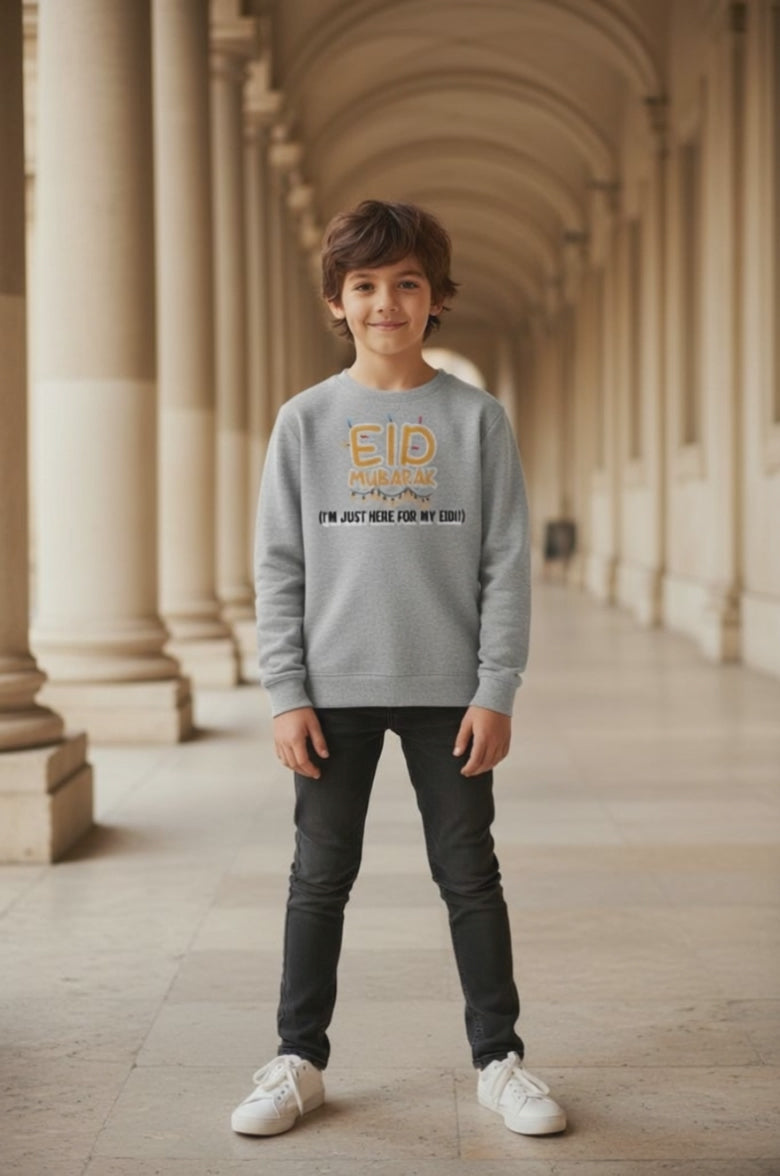 Kids Eid Mubarak Sweatshirt – “I’m Just Here For My Eidi!”